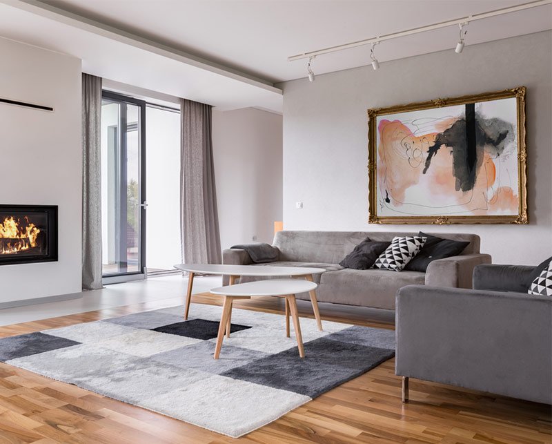 The gracious entry foyer leads to an open kitchen with custom stained walnut cabinetry, granite countertops, and a built-in dining banquette (in select one bedroom homes).